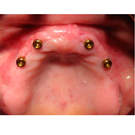 Una periodontitis muy avanzada hizo recomendable la extracción de todos los dientes y la rehabilitación de toda la dentadura mediante implantes y prótesis cerámica.