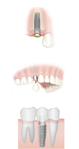Durante el primer paso de este procedimiento, un dentista especializado en implantología coloca quirúrgicamente un poste o tornillo de titanio en el maxilar del paciente.